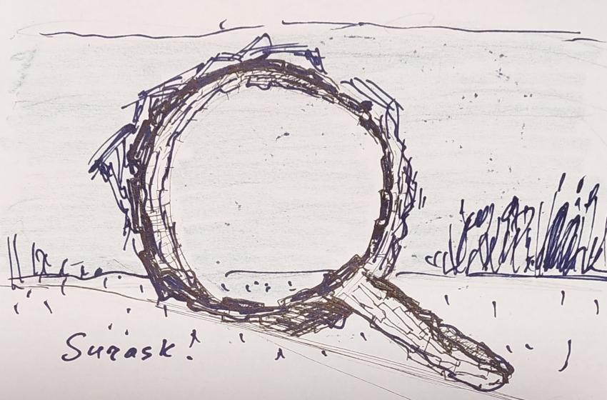 Kūrinio idėja: Objektas „Surask..“ veikia kaip riba tarp matomo ir nematomo, tarp akivaizdaus ir to, kas lieka paslėpta, bet juntama. Kurti – tai pastatyti kitą žmogų ten, iš kur jis matytų pasaulį tokį, kokį nori matyti... (Antoine de Saint-Exupéry) „Surask..“ – kūrinys, kviečiantis sustoti, įsižiūrėti pro jį ir leisti regėjimui virsti matymu. Tai, kas esminga, neatsiveria paviršiuje – jį galima rasti tik įdėjus pastangą, pasitelkus intuiciją ir jautrumą. Čia svarbiausia ne forma, o paieška.